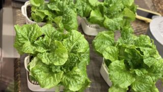 室内水耕栽培でサンチュ150枚の大量収穫に成功!スーパーと比較した節約効果や、育ちすぎた九条ネギを「パラパラ」な状態で冷凍保存するライフハックを公開。子供と一緒に楽しめる収穫体験記です。